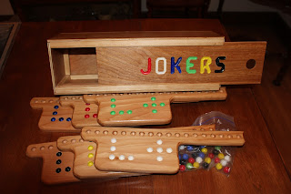 Game board pieces that allow for better storage or portability. An optional box can be made for storage. It will hold the six board pieces, marbles and two decks of cards.